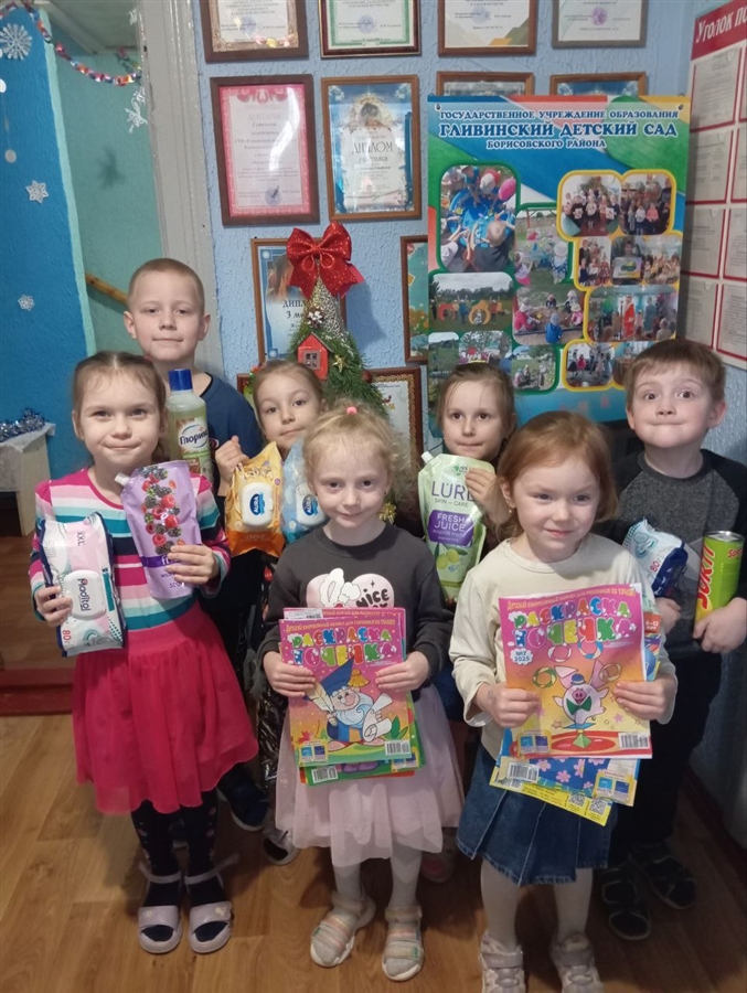 В рамках этой акции наши воспитанники совместно с родителями , а так же коллектив учреждения образования, собрали для воспитанников и обучающихся ГУО "Борисовский районный ЦКРОиР" санитарно-гигиенические средства, раскраски, книги.