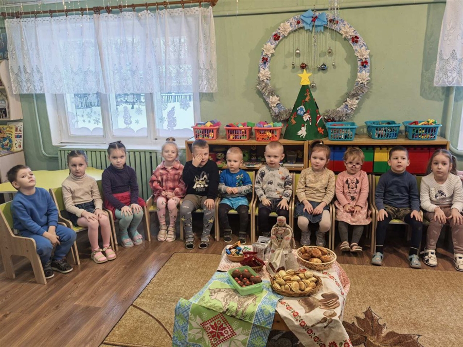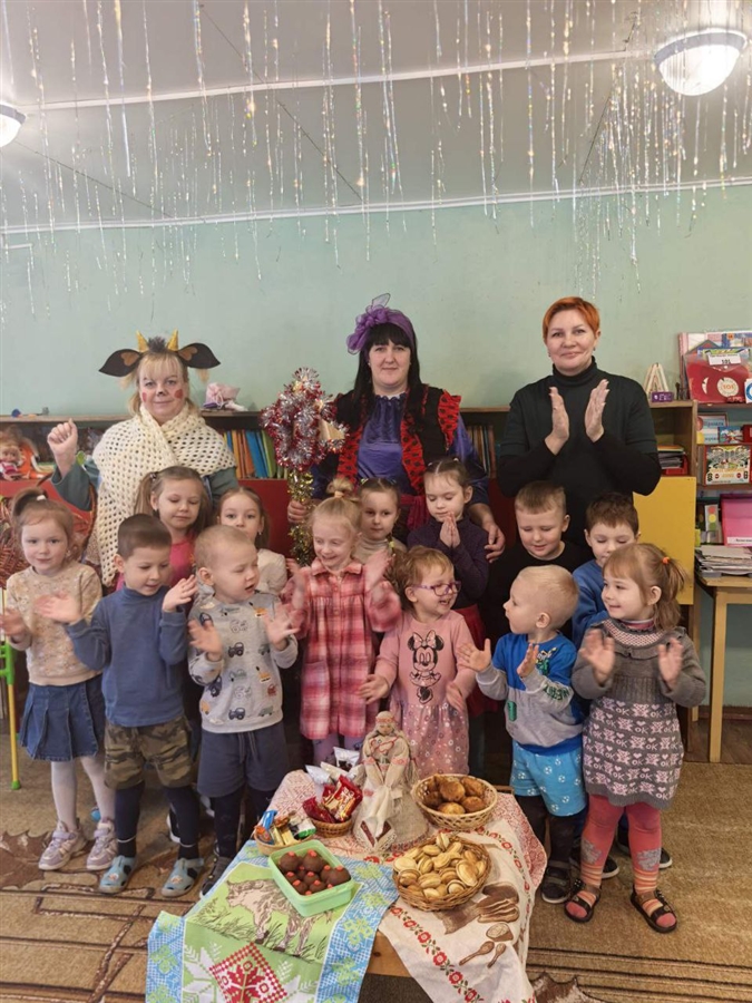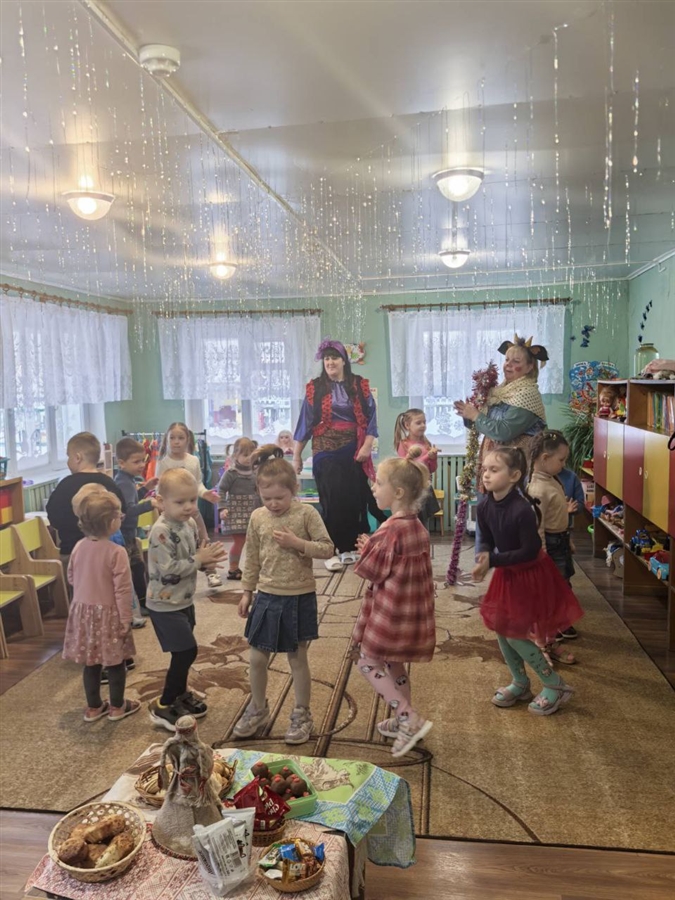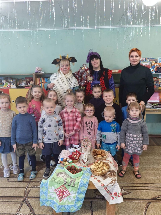 В нарядных костюмах, с песнями и закличками, с пожеланиями богатства и счастья ряженые обошли ребят. Хозяева были щедры: угощали гостей сладостями.